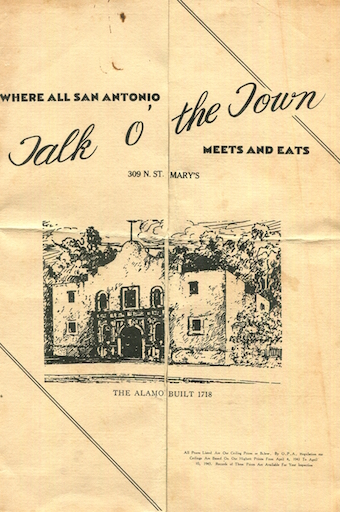 USA Texas San Antonio Restaurant Menu Talk Of The Town 1943 Front