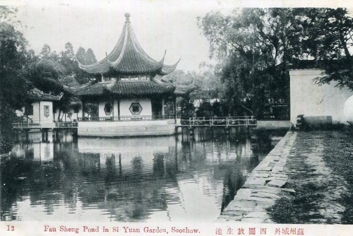 China Soochow Postcard Si Yuan Garden Fan Sheng Pond 1930