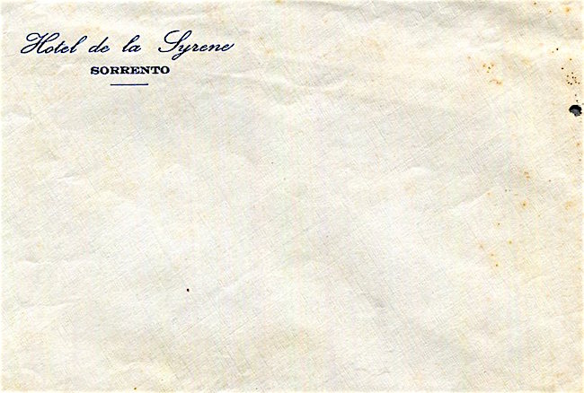 Italy Sorrento Hotel De La Syrene Stationery 1930