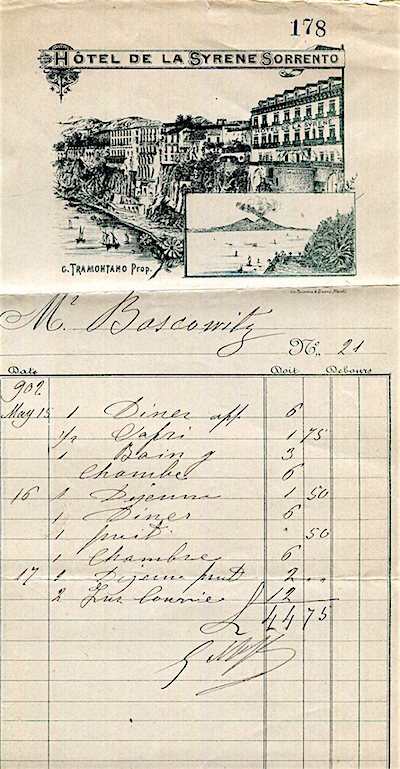 Italy Sorrento Hotel De La Syrene Receipt 1902