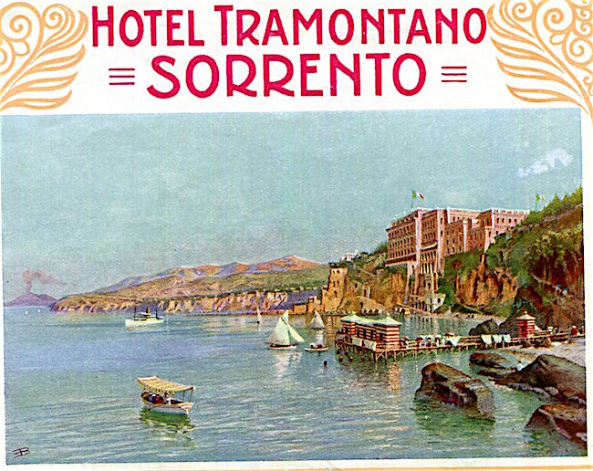 Italy Sorrento Hotel Tramontano Luggage Label 1928