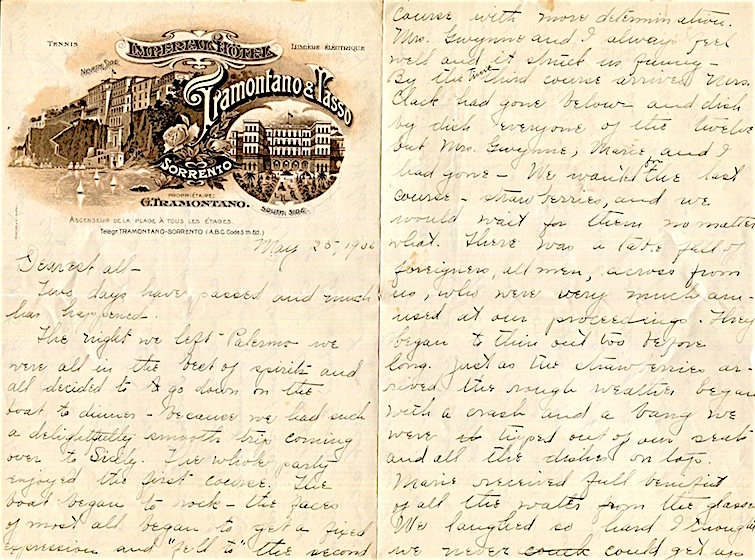 Italy Sorrento Hotel Tramontano Stationery Tourist Letter 1906 Front