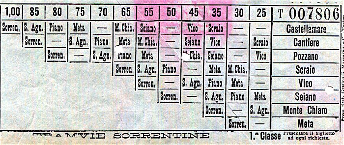 Italy Sorrento Tram Ticket 1911