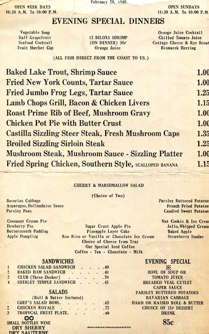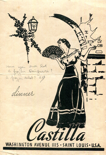 USA Missouri St Louis Menu Restaurant Castilla 1940 Front