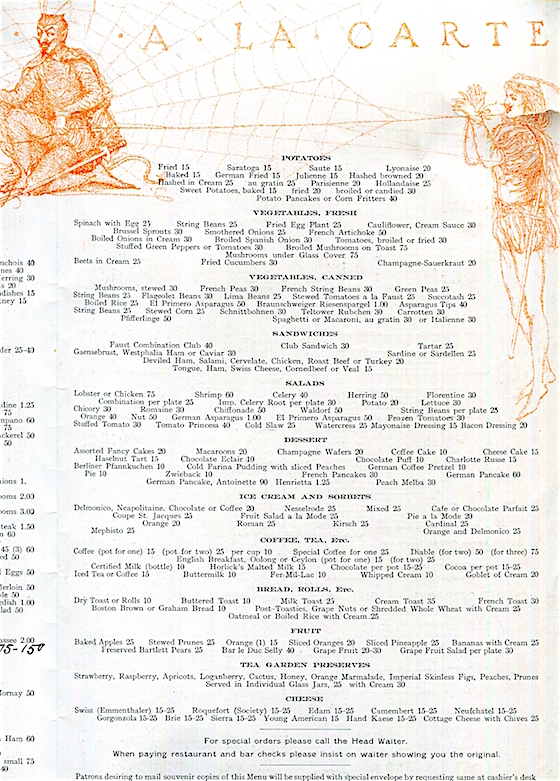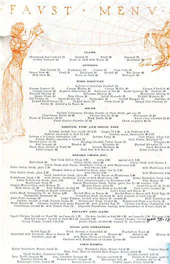 USA Missouri St Louis Menu Restaurant Tony Faust 1910 Inside 2