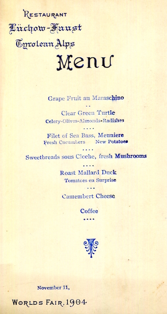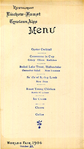 USA Missouri St Louis Menu Worlds Fair 1904 2