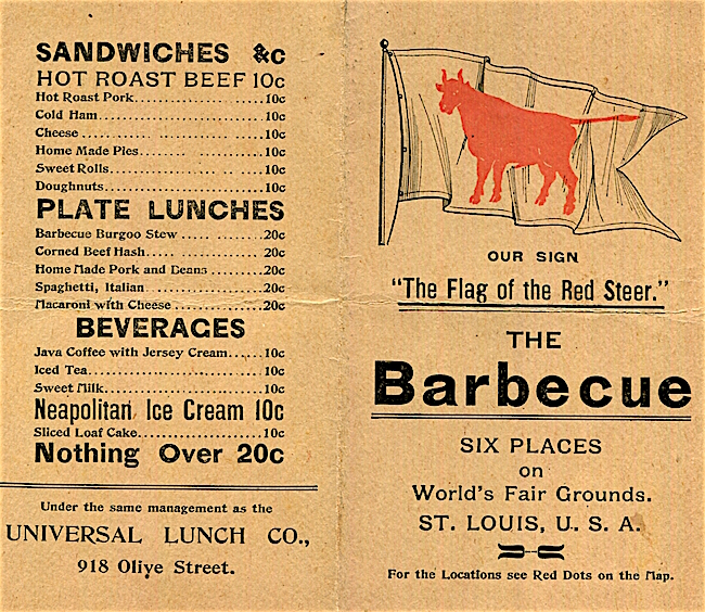 USA Missouri St Louis Menu Worlds Fair Restaurant The Barbecue 1904 Front