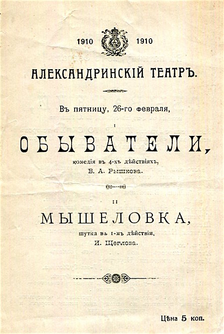 Russia St Petersburg Entertainment Alexander Theater Program 1910 Front