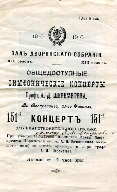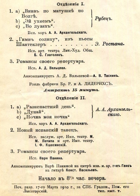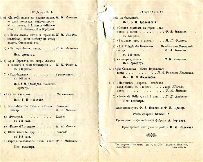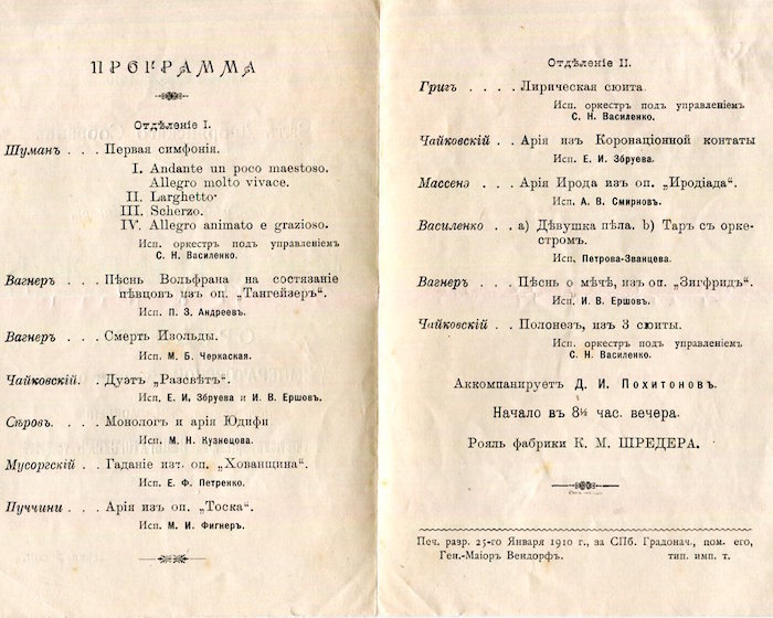 Russia St Petersburg Entertainment Nobles Assembly Concert Program 1910-2 Front