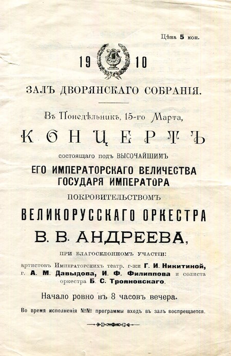 Russia St Petersburg Entertainment Nobles Assembly Concert Program 1910-3 Front