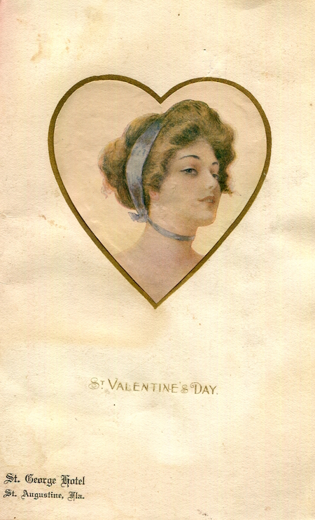 USA Florida St Augustine St George Hotel Menu St Valentine Day 1923 Front
