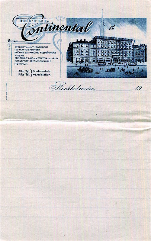 Sweden Stockholm Hotel Continental Luggage Label 1932