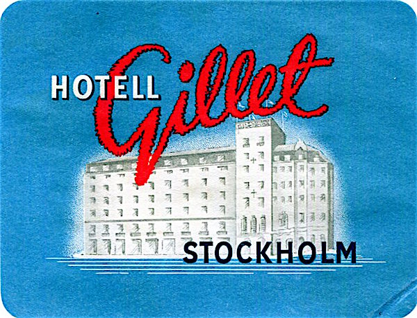 Sweden Stockholm Hotel Gillet Luggage Label 1934