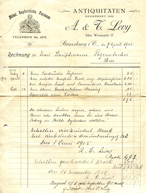 France Strasbourg Commerce A T Levy Receipt 1911 2