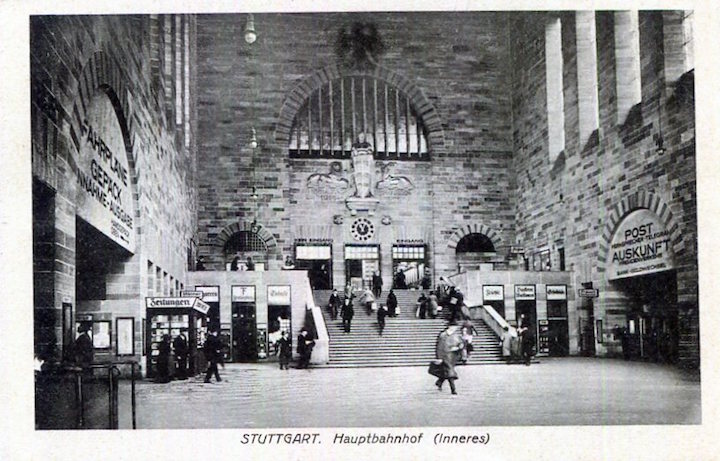 Germany Stuttgart Railroad Staion Postcard Entrance Hall 1928
