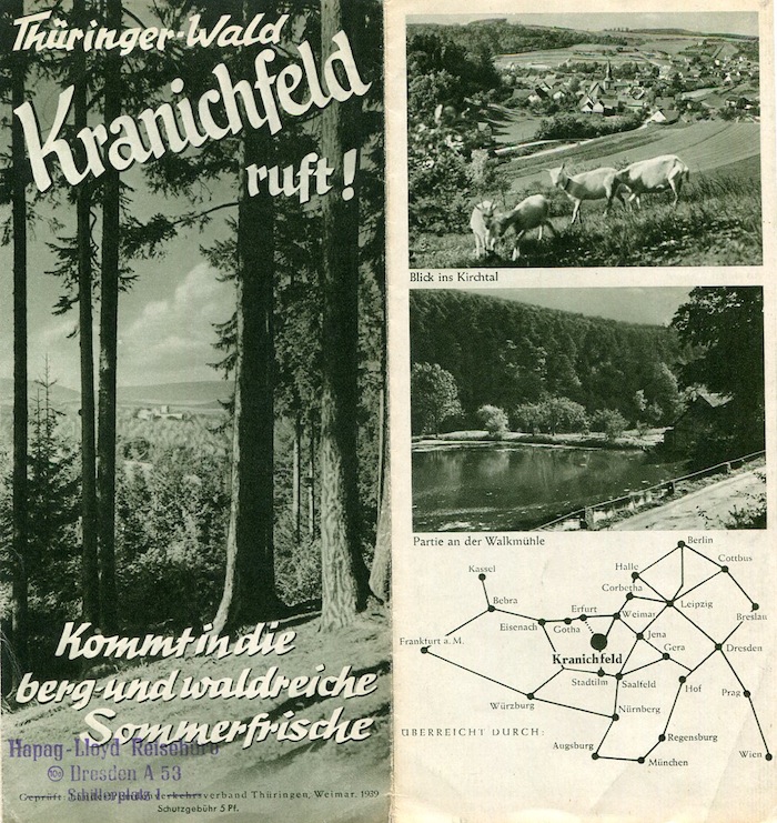 Germany Thuringia Brochure Kranichfeld 1939 Back