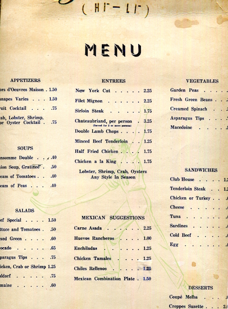 Mexico Tijuana Restaurant Jalai Menu 1924