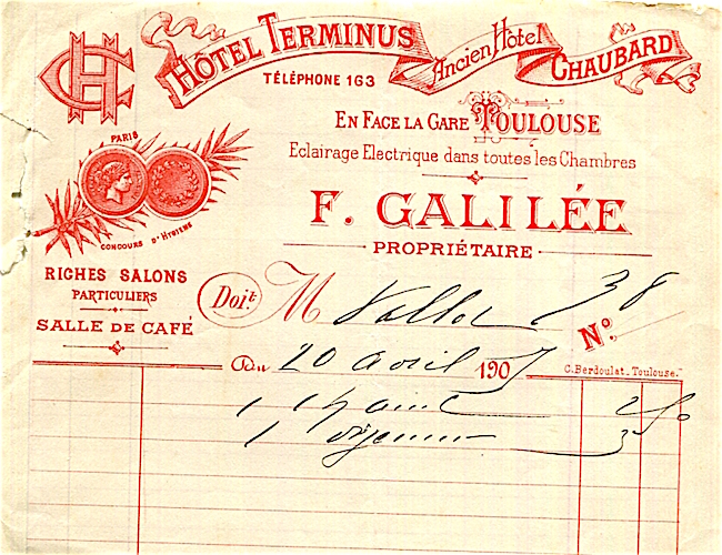 France Toulouse Hotel Grand Ccapoul Receipt 1897