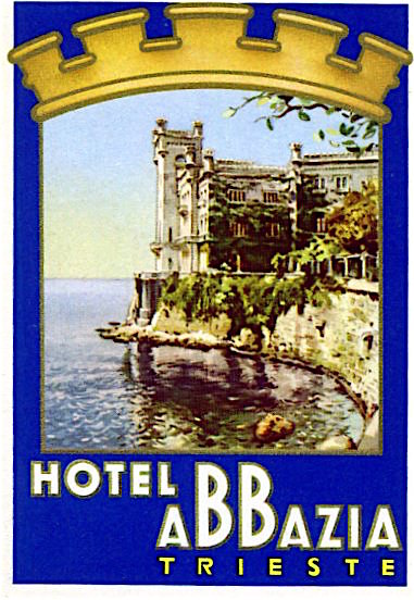 Italy Trieste Hotel Abbazia Luggage Label 1936