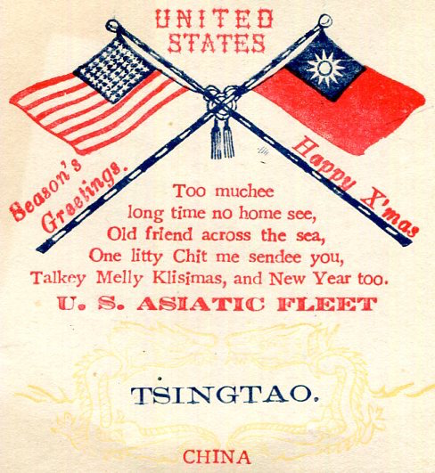 China Tsingtao Postcard US Navy Christmas Card 1945