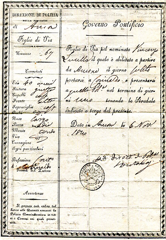 Italy Vatican Passport 1840 Back