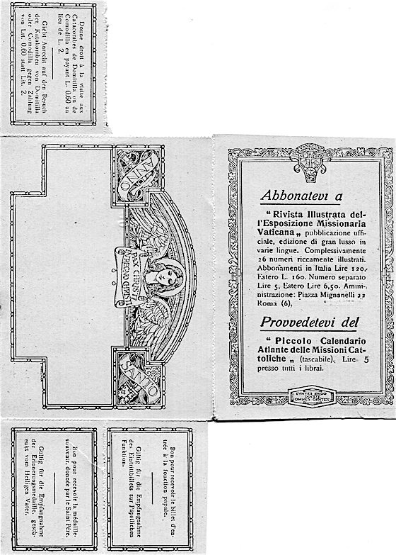 Italy Vatican Ticket Book Jubilee Year 1925 Back