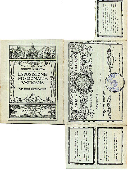 Italy Vatican Ticket Catacombs 1925