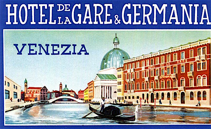 Italy Venice Hotel De La Gare & Germania Luggage Label 1933