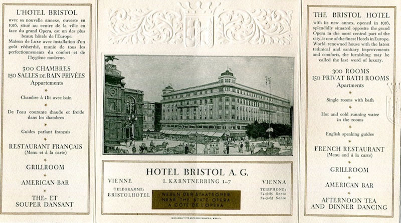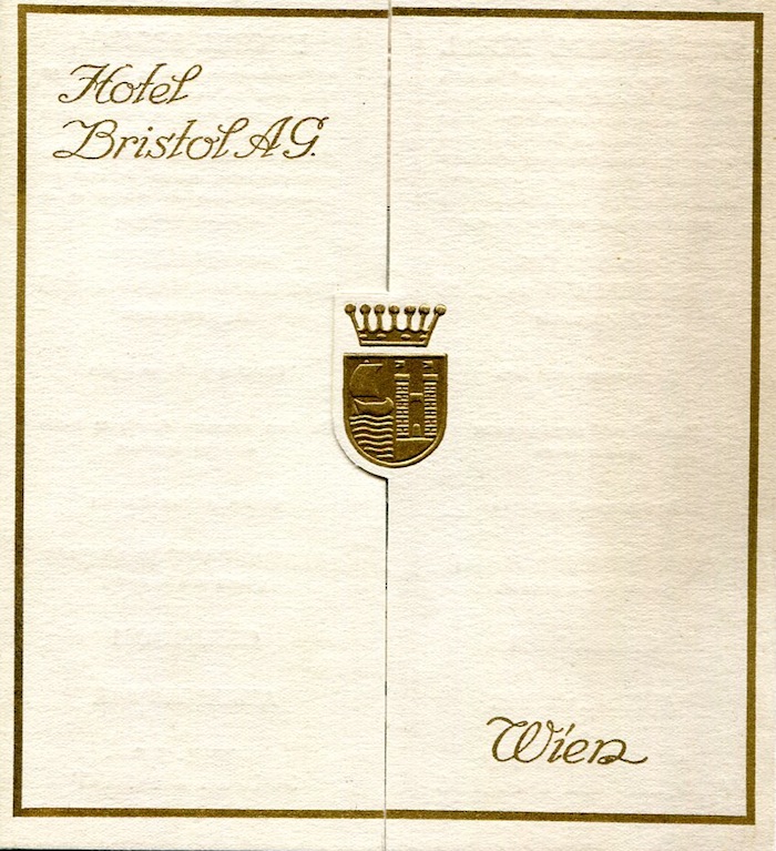 Austria Vienna Hotel Bristol Brochure 1930 Front