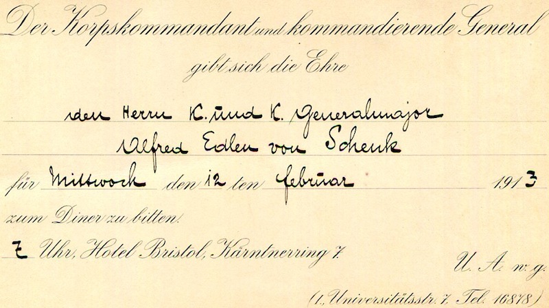 Austria Vienna Hotel Bristol Invitation Military Dinner Corps Commander 1913