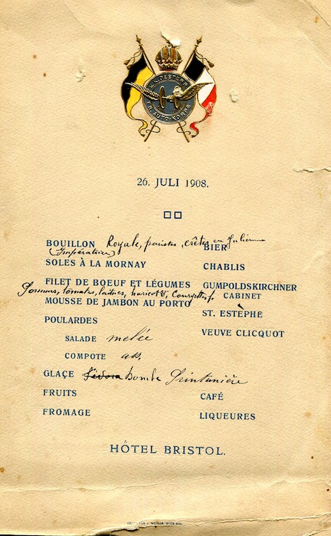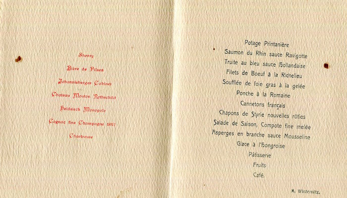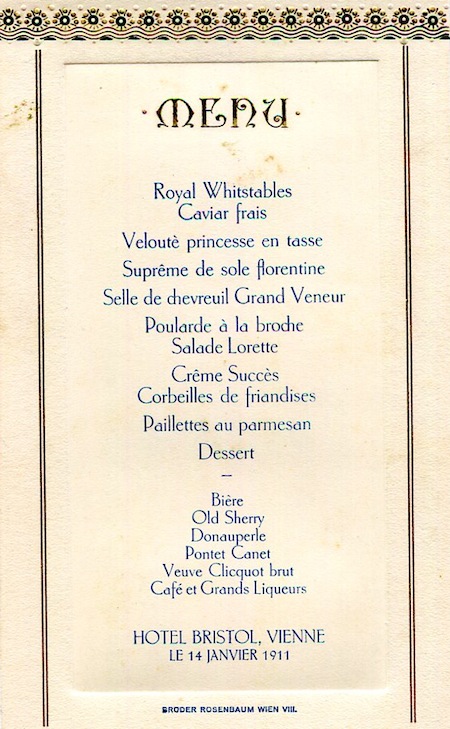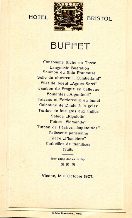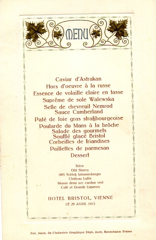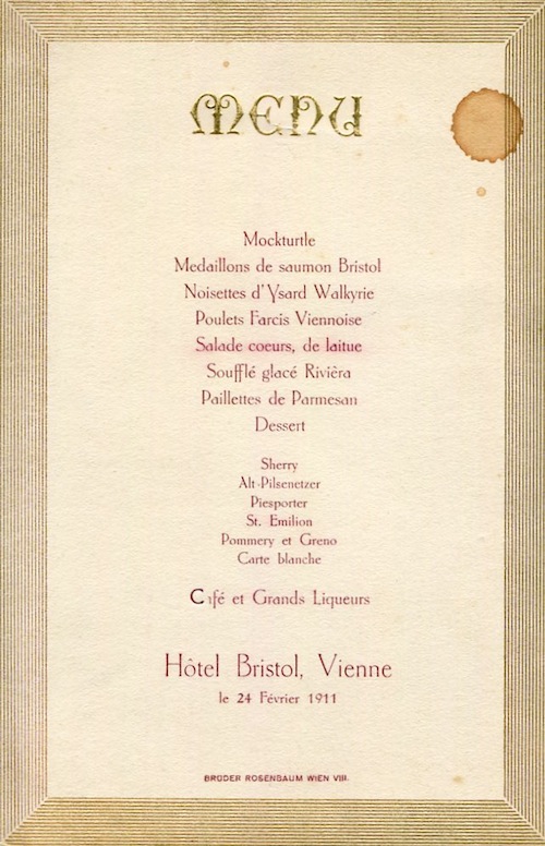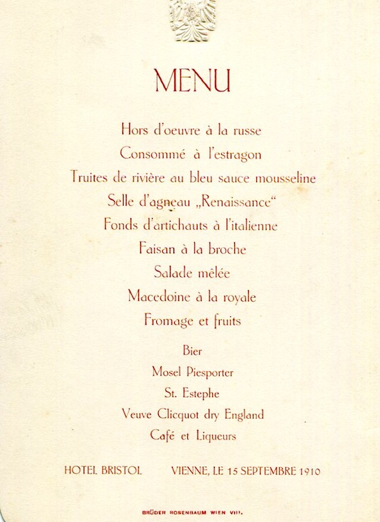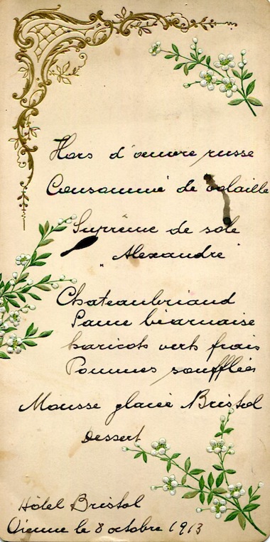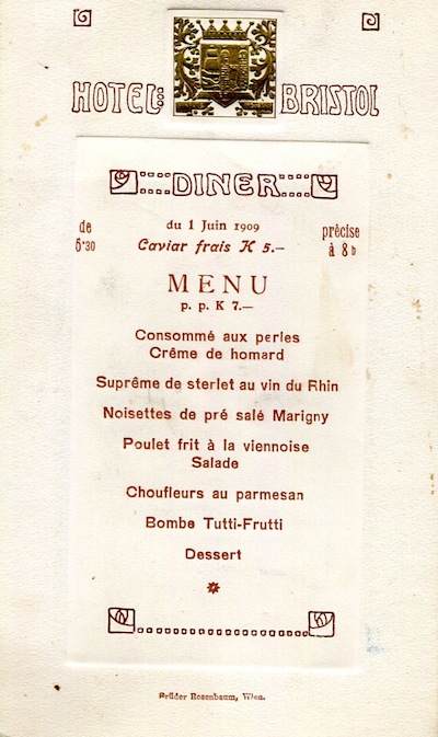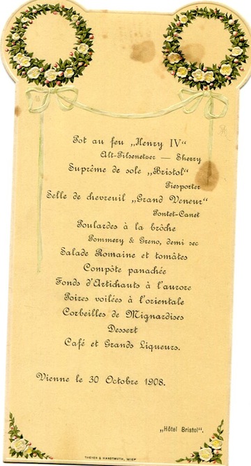 Austria Vienna Hotel Bristol Menu 1900 Inside