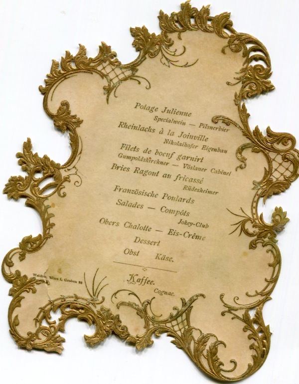 Austria Vienna Special Occasion Menu 1890