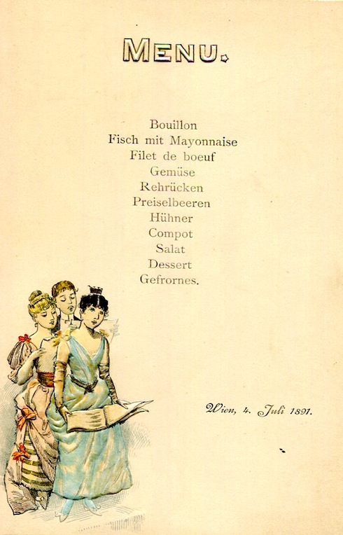 Austria Vienna Special Occasion Menu 1891