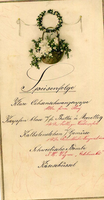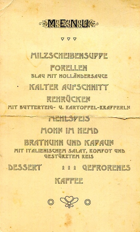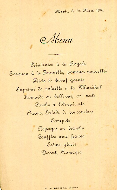 Austria Vienna Special Occasion Menu 1896