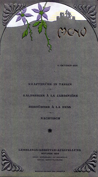 Austria Vienna Special Occasion Menu 1904-1
