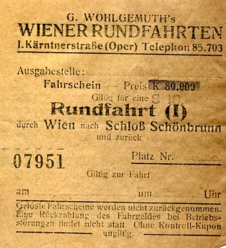 Austria Vienna Tramway Ticket 1925