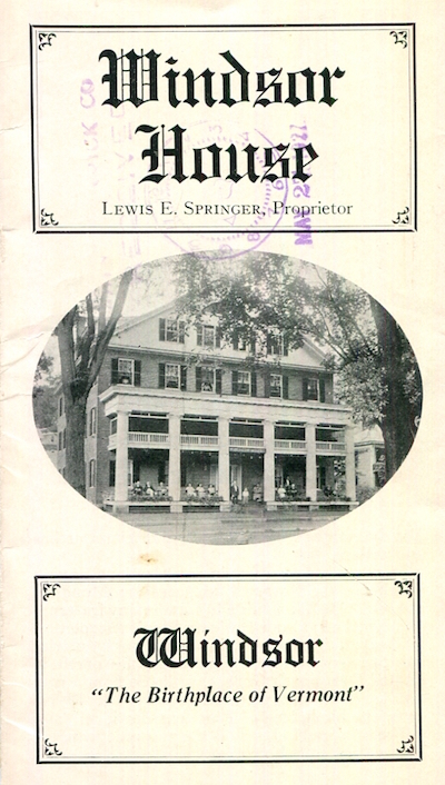 USA Vermont Windsor Brochure Hotel Windsor House 1925 Front