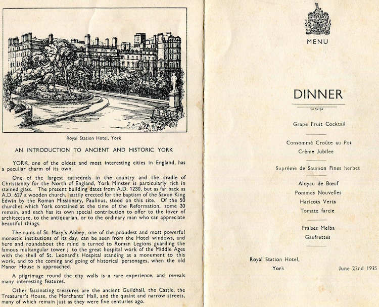 England York Royal Station Hotel Menu 1935 Front