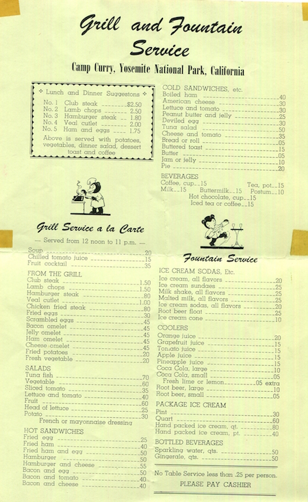 USA California Yosemite Menu Camp Curry 1930