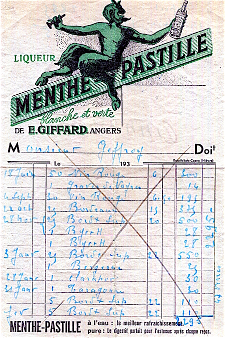 France Angers Commerce E Giffard Receipt Liquor 1933