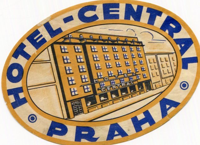 Czechoslovakia Prague Hotel Central Luggage Label 1938