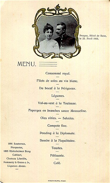 Czechoslovakia Prague Hotel De Saxe Menu 1903