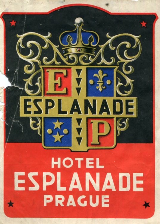 Czechoslovakia Prague Hotel Esplanade Luggage Label 1930