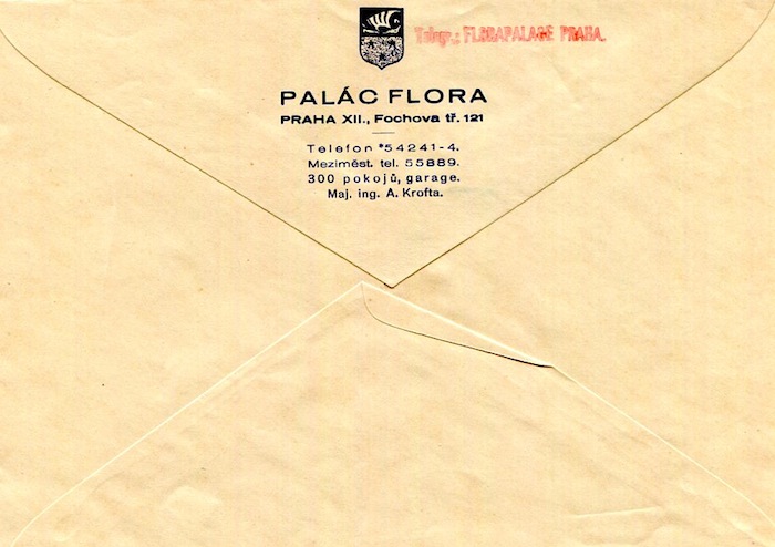 Czechoslovakia Prague Hotel Palac Flora Envelope 1937