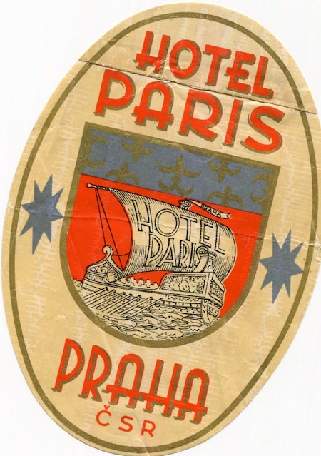 Czechoslovakia Prague Hotel Paris Luggage Label 1938