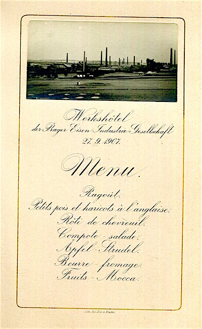 Czechoslovakia Prague Werkshotel Menu 1907