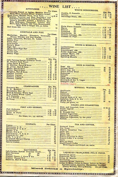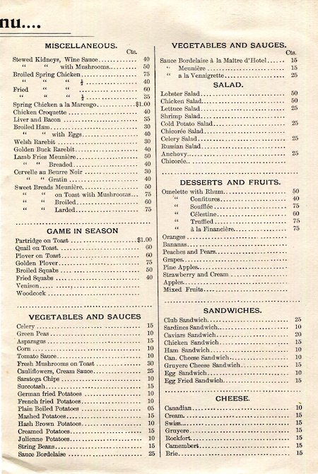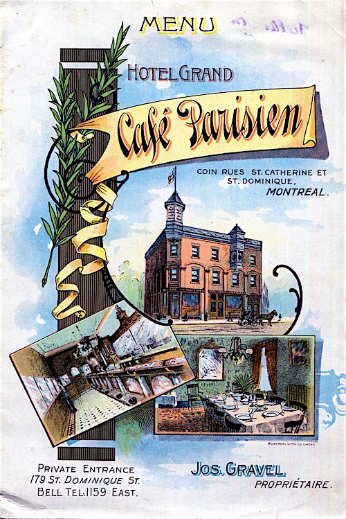 Canada Montreal Hotel Grand Cafe Parisien Menu 1902 Inside 2