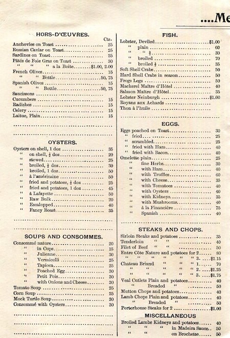 Canada Montreal Hotel Grand Cafe Parisien Menu 1902 Inside 1