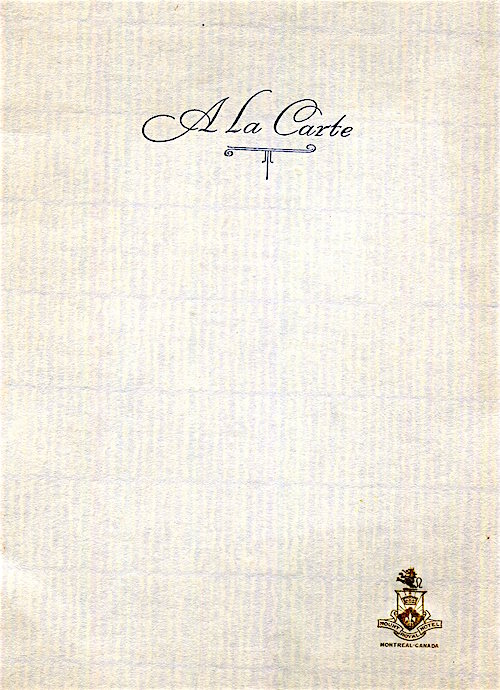 Canada Montreal Mount Royal Hotel Menu 1937-3 Front