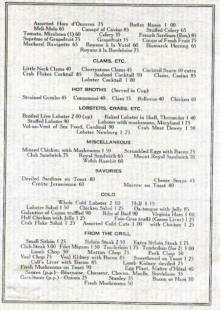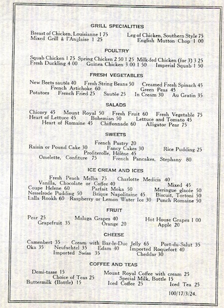 Canada Montreal Mount Royal Hotel Menu 1924-3 Inside